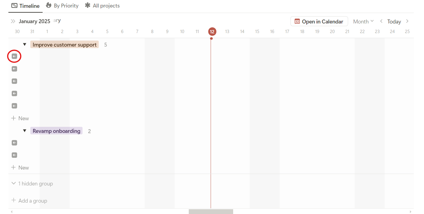템플릿에 칸반보드 형태로 함께 제공된 Task에서도 똑같이 해주시면 됩니다. ( 혹시 일정이 안보이신다면 1 hidden group 버튼을 클릭하면 모든 일정이 보입니다. 모두 삭제해주세요)