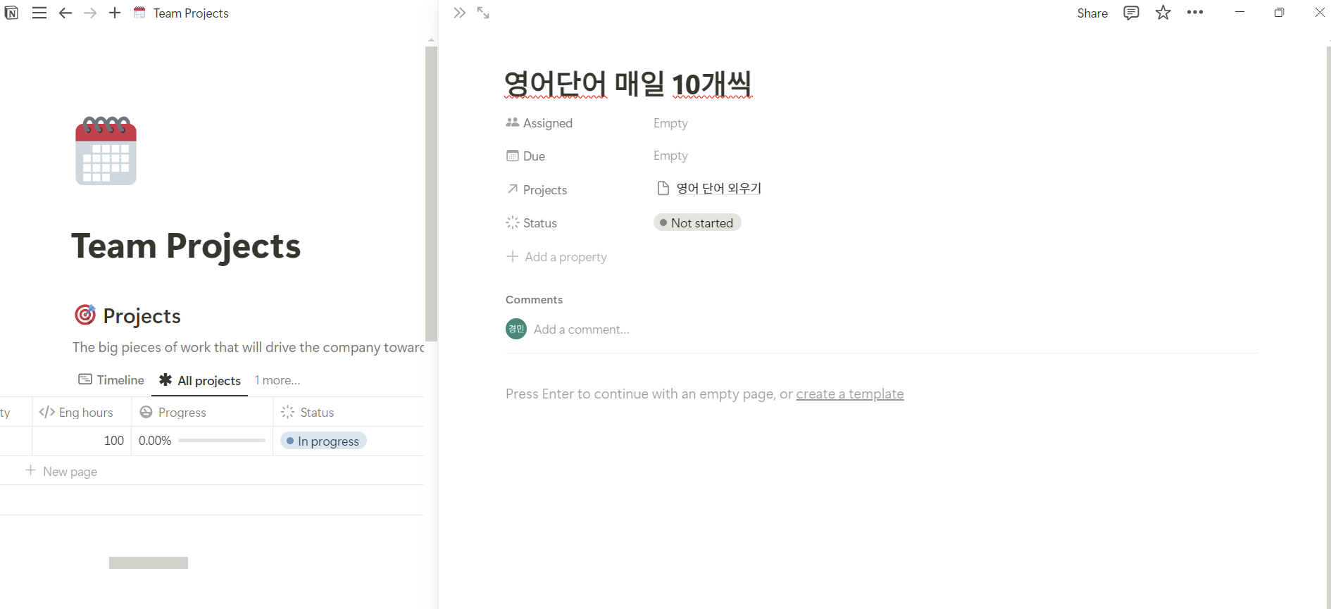 노션에 대한 이해가 없어도 프로젝트를 등록하는 방법만 안다면 충분히 효율적으로 사용할 수 있는 템플릿이었습니다.