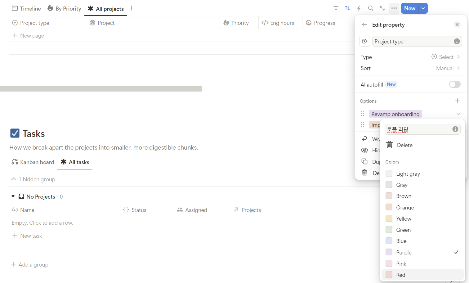 이제 새로운 일정을 추가하기 전에 Project type도 하려는 일에 맞게 바꾸어야 합니다.