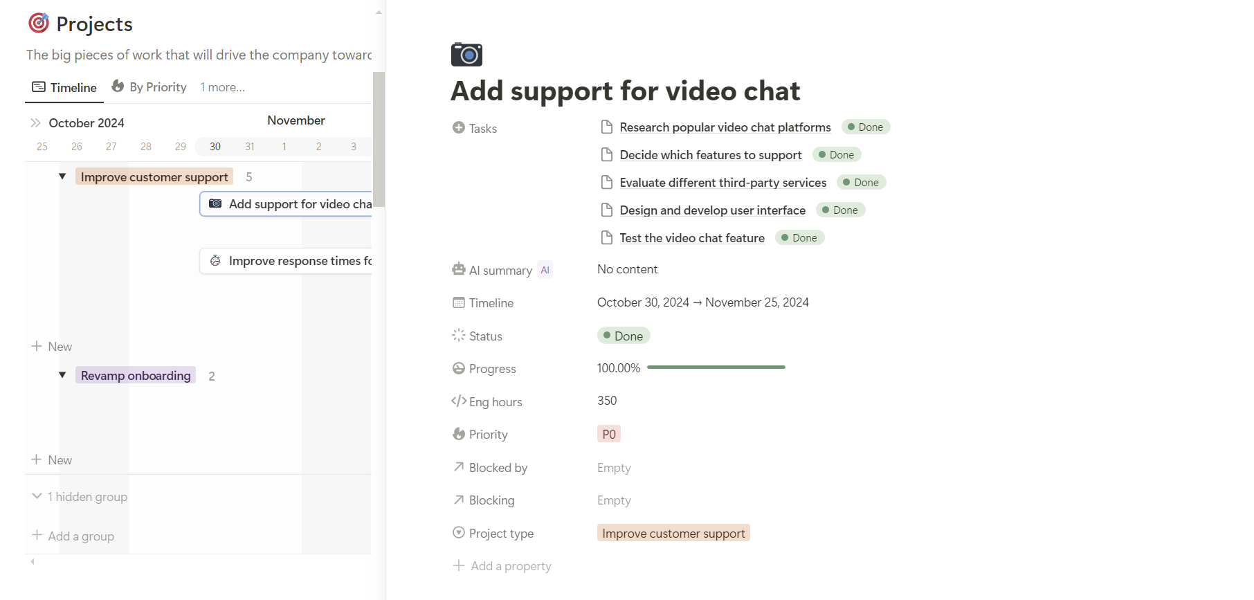 일곱번째, 여덟번째에 있는 Blocked by, Blocking은 다른 프로젝트로 인해 이 프로젝트가 중단되거나, 이 프로젝트로 인해 다른 프로젝트가 중단된 경우에 사용할 수 있습니다.